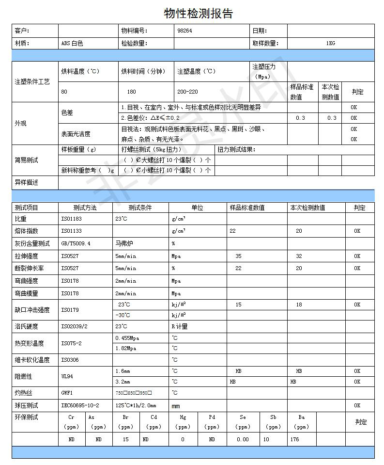 ABS阻燃塑料是丙烯腈(A)、丁二烯(B)、苯乙烯(S)三種單體的三元共聚物,三種單體相對含量可任意變化,制成各種樹脂。ABS兼有三種組元的共同性能,A使其耐化學腐蝕、耐熱,并有一定的表面硬度,B使其具有高彈性和韌性,S使其具有熱塑性塑料的加工成型特性并改善電性能。因此ABS塑料是一種原料易得、綜合性能良好、價格便宜、用途廣泛的“堅韌、質硬、剛性”材料。ABS塑料在機械、電氣、紡織、汽車、飛機、輪船等制造工業及化工中獲得了廣泛的應用。